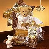 Send peace, warmth and serenity this season with Holiday Angels. Crystal Twinklebear is a 12", fully jointed, heirloom quality plush tree top decoration from the Boyds® collection. Also included are "Angel bear" and "Bright bear" tree ornaments, lemon almond thimble cookies, hot chocolate drink mix, and hard candies. All comes beautifully arranged in a gold star shaped wire and wicker basket with lid.