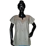Gift for Girls-Smoke White kurtis / tunics Embroidered Cotton Ethnic Indian Size M For Free Shipping (Apparel)