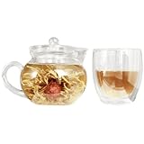 This uniquely designed gift set includes a 12-ounce teapot with infuser excellent for brewing all types of flower tea, loose tea, and powder tea. Also included is the double wall 6-ounce Retro teacup providing a stylish twist with its ribbed inner layer. The entire cup is made of sturdy borosilicate glass and both the teapot and teacup are dishwasher and microwave safe. Packed in a gift box set, three blooming teas are also provided. This gift set is the ideal gift for any occasion. Read more