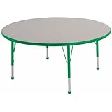 Color-banded laminate table tops are 1.25 thick and laminated on both sides for a stain resistant and easy to clean surface. The color-banding contains no phthalates and grips into the table edge and is pinned in place with recessed nails to ensure that it cannot be removed. Tables are available with Toddler size legs or Standard size legs and adjust in 1 increments. The table legs have a powder-coated finish on the upper and chrome-plated finish on the adjustable insert. Easy mount leg installation with pre-installed brackets and predrilled screw holes. Color coordinated polypropylene ball glides are standard. Traditional nickel-plated self leveling glides are available for an additional charge. Available in 13 shapes and 4 colors - Blue Green Red and Yellow that match ECR s school stack chairs. 7 Year Limited Warranty. Read more