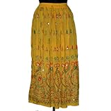 Designer Skirts Floral Yellow Womens Long Bohemian Gypsy for Women 38 Inch (Apparel)