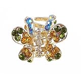 Hair Clip - H4- Crystal Butterfly Flower - Sm Size (7/8" x 11/16") ~ Topaz & Olive (Gold and Green) (Jewelry)