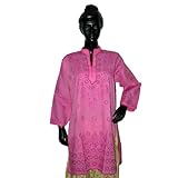 Embroidered Cotton Pink Blouse Kurta India Top Tunic Kurta Xl (Apparel)
