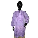 Lavender Purple Embroidered Yoga Cotton Blouse Tunic Top Kurta Kurti Top Dress M (Apparel)