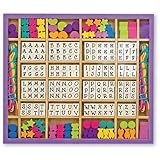 Open up your own jewelry-making factory with this Wooden Stringing Beads set. This conveniently packaged, brightly painted set contains more than 200 wooden letters and beads. There are also eight colored cords to make necklaces and bracelets that you can keep or give as gifts. Stored in a durable, handy wood tray. Read more