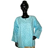 Turquoise Ladies Fashion Hand Embroidered Cotton Top Tunic India Xxl (Apparel)